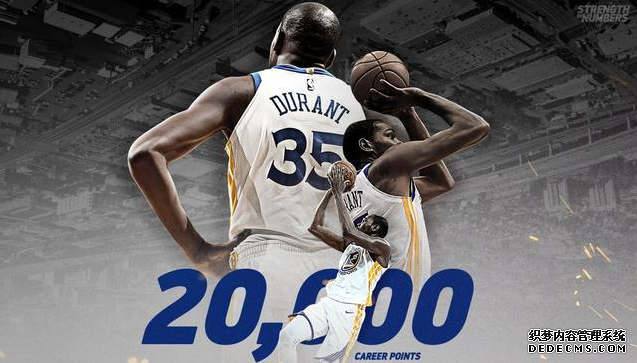 KD为史上第5位在30岁前砍下20000分的球员,其他四位为詹姆斯,科比,张伯伦,乔丹。